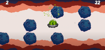 This is a 2D infinite loop side scrolling game and you are a alien driving a spaceship on the space.